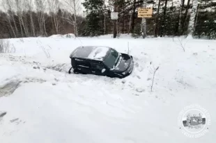 В Томской области автомобиль съехал с дороги и застрял в сугробе