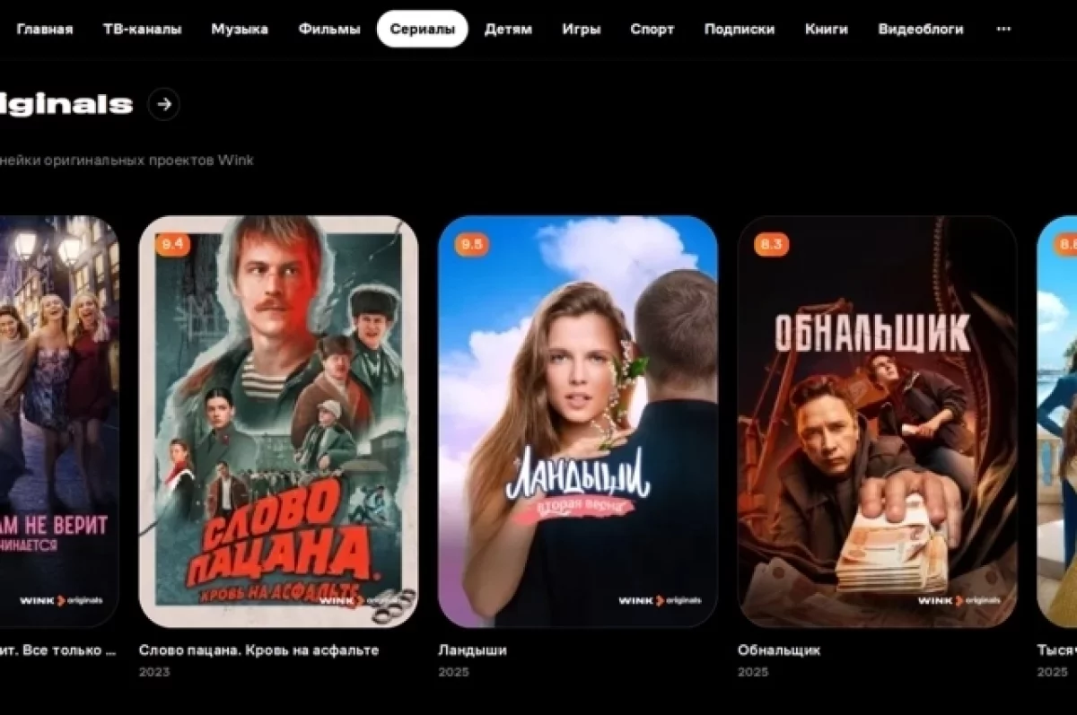 Всего в линейке Wink Originals вышло более 60 проектов, которые собрали многомиллионную аудиторию и получили высокие оценки зрителей — это «Слово пацана. Кровь на асфальте», два сезона «Фишера», «Москва слезам не верит. Всё только начинается», «Комбинация», «Балет» и многие другие. В 2025 году Wink также представил сериалы «Челюскин. Первые», «Между нами химия», «ВИА “Васильки”», «Доктор Вера», «Ухожу красиво 2», «Берлинская жара», «Любопытная Варвара. Второй сезон», «Нам покер», «Обнальщик».